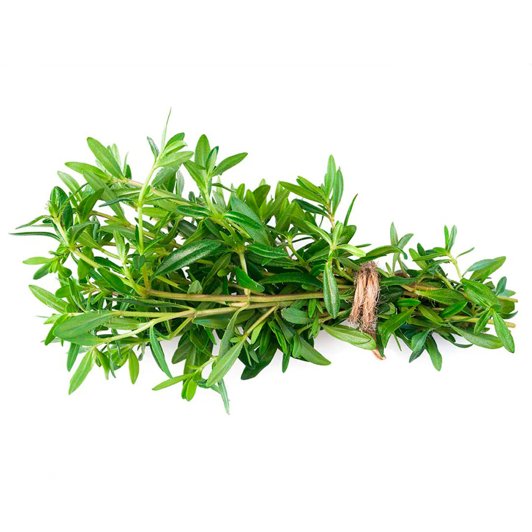 El tomillo es una hierba aromática de sabor intenso, fresco y ligeramente terroso, ampliamente utilizada en la cocina mediterránea y mundial. Sus pequeñas hojas verdes aportan aroma y carácter a sopas, guisos, carnes, pescados, salsas y estofados. Versátil y resistente al calor, el tomillo es ideal para realzar el sabor de los platillos de manera natural y sofisticada.
